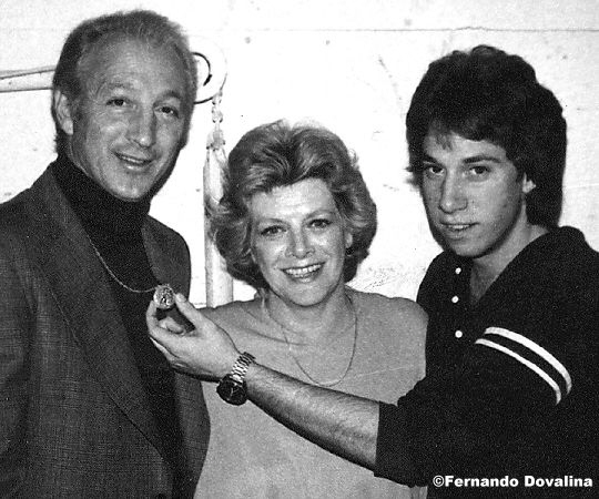 Then, Dante Di Paolo, her boyfriend, and Miguel Ferrer, her oldest son, came in. Miguel, then in his early 20s, was in a playful mood and asked to have his photo taken with Dante and his mother. As I focused the lens on them, Miguel reached out with one hand and began toying with Dante's neck medallion. The camera clicked.