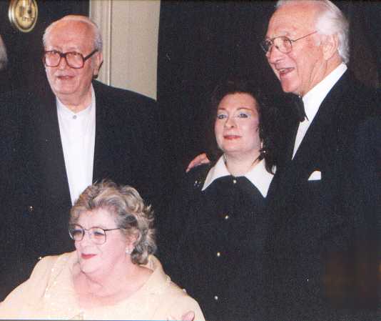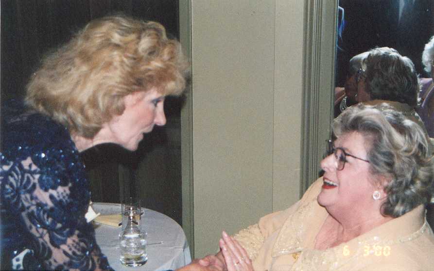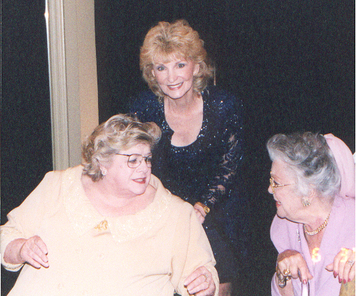 As it turned out- this particular night- Rosemary's dearest friends were there to visit with her also. Her dear friend Jackie Sherman and her daughters Kathy and Susie were there as well as the actress from earlier movies who played with Judy Garland, Miss Ann Rutherford, who looked absolutely divine with sparkly spangly glasses . (That's Ann on the right.)