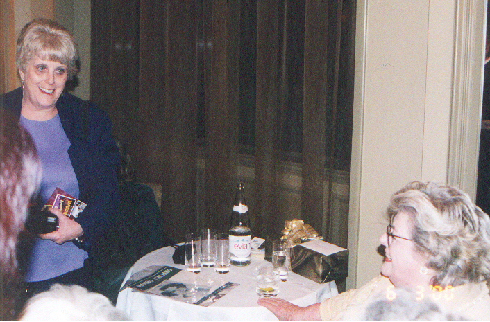 Rosemary was absolutely wonderful, she acknowledged everyone and tried to include each of them in her conversations. C-l-o-o-n-e-t-t-e, Clooneyfans and Janet told Rosemary a bit about her "internet fans" and websites presence. She commented that she hadn't had the time to see all of this yet, though she has the equipment available to do so. Her friend Jackie said "I have a new computer for her, all set up to look at, but will she?" Rosemary said "I will, I will!" and threw her hands up in the air and everyone laughed. She thanked us for our work.
